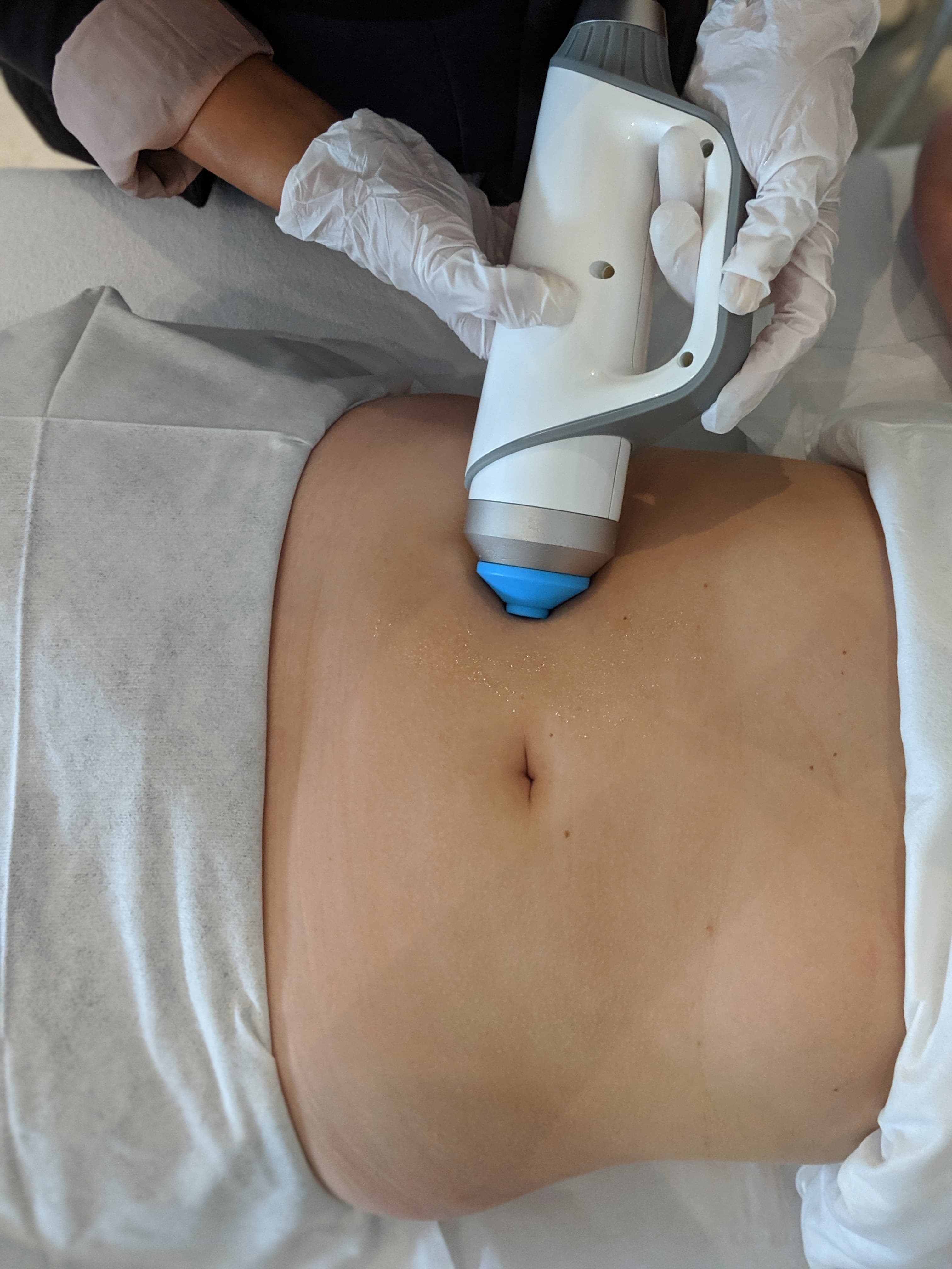 3D shockwave uses sound waves to stimulate the microcirculation within the fat layer, increasing the metabolic function of the area and increasing cellular membrane permeability. Free fatty acids and glycerol are released from the fat cells and sit in the intercellular space. Lymphatic movement and increased blood supply remove these waste products from the body.